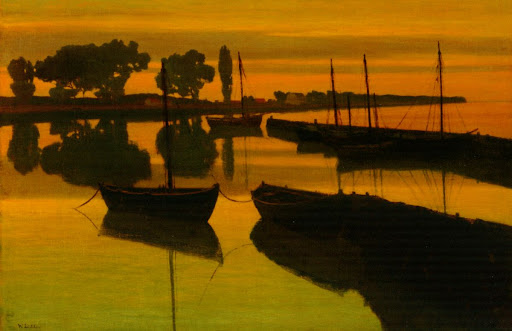 Walter Lestikow Жизнь его была печальна, а смерть трагична. Он покончил с собой в 1908 г. Если Мостин был недооценен современниками потому, что писал в немодной импрессионисткой технике (замшелое ретроградство по тем временам), то Лестиков — потому, что писал в реалистической манере, да еще в скупом малоэмоциональном стиле, который войдет в моду только в 50-е годы ХХ века как неореализм (когда о нем и вспомнили). То есть он умудрился одновременно и отстать и опередить свое время. А еще он умудрился на старте своей карьеры с кайзером поцапаться... Итак, символисткие пейзажи, выполненные в реалистической технике: 1. "Вечернее настроение около канала"